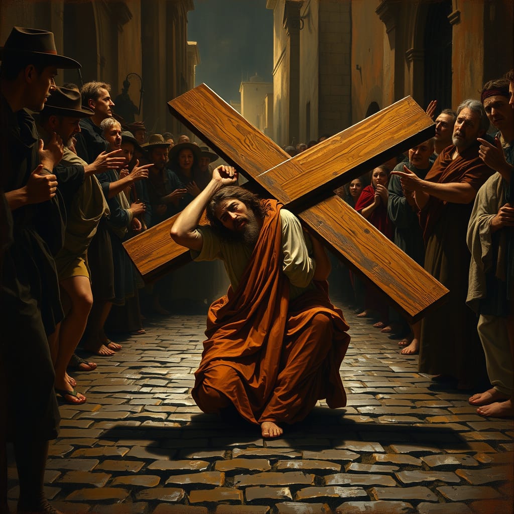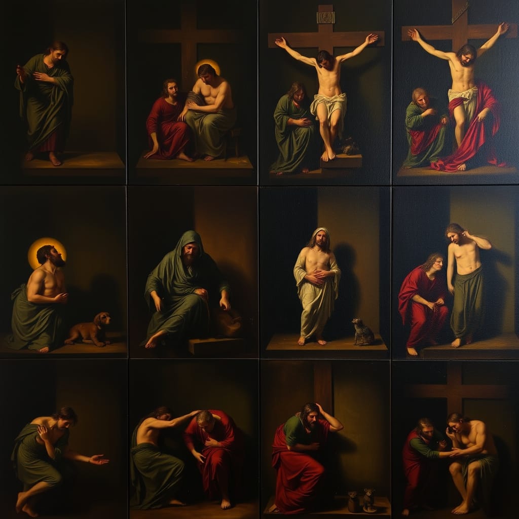 The Stations of the Cross, also known as the Way of the Cross, the Way of Sorrows, the Via Crucis, or the Via Dolorosa, are a series of fourteen images depicting the events of Jesus Christ’s journey on the day of his crucifixion, accompanied by appropriate prayers. These stations originate from the traditional pilgrimage route in Jerusalem, the Via Dolorosa, which symbolises the path Jesus is believed to have walked from the Lions’ Gate to Mount Calvary. The primary purpose of the stations is to facilitate a spiritual reflection for believers, encouraging them to contemplate the Passion of Christ.