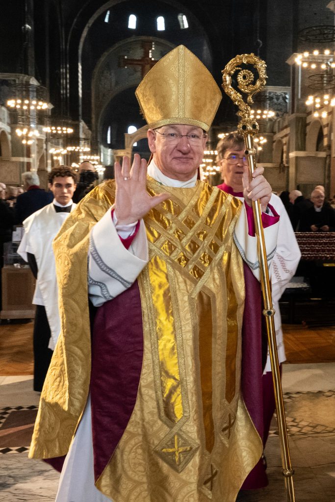 To the accompaniment of a fanfare composed by Simon Johnson, Master of Music, Archbishop Moth entered the Cathedral via the Great West Door and was received by the Provost, Canon Shaun Lennard.