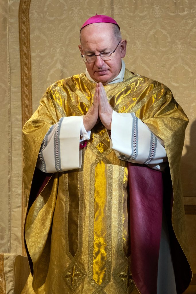 Towards the end of the Mass, during the singing of the Church’s great hymn of thanksgiving, the Te Deum, Archbishop Moth was led around the Cathedral to bless the people, and in doing so, paused briefly for prayer at the tomb of one of his predecessors, Cardinal Cormac Murphy-O’Connor, the 10th Archbishop of Westminster (2000-2009), and 3rd Bishop of Arundel and Brighton (1977-2000).