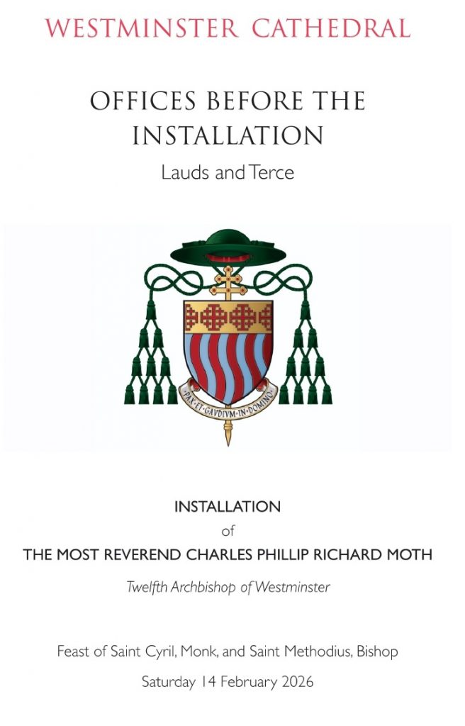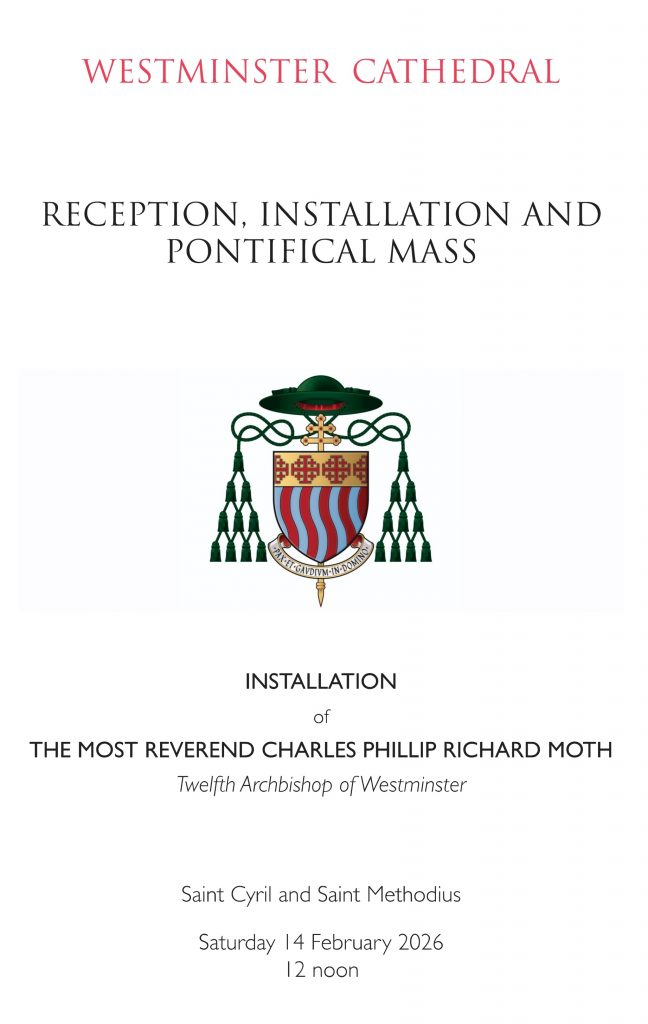 Booklet of The Installation of the 12th Archbishop of Westminster, at Westminster Cathedral at 12:00 noon on Saturday, 14th February 2026.