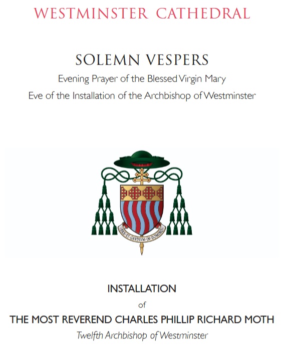Archbishop Richard Moth Installation Twelfth Archbishop of Westminster