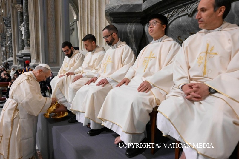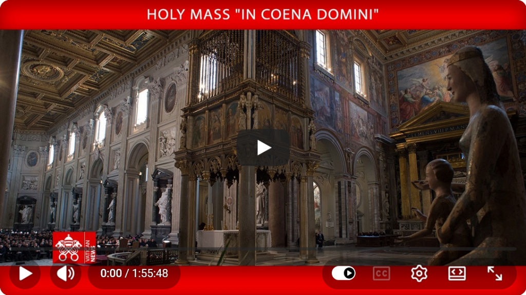 This evening’s solemn liturgy marks our entry into the Holy Triduum of the Lord’s Passion, Death and Resurrection. We cross this threshold not as mere spectators, nor out of habit, but as those personally invited by Jesus himself as guests at the Supper in which bread and wine become for us the sacrament of salvation. Indeed, we take part in a banquet at which Christ “having loved his own who were in the world, loved them to the end” (Jn 13:1). His love becomes both gesture and nourishment for all, revealing the justice of God. In this world, and particularly in those places where evil abounds, Jesus loves definitively — forever, and with his whole being.