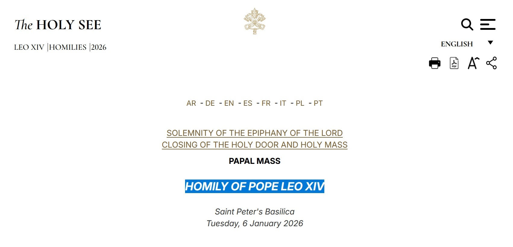 Click below for the Text of Pope Leo XVI’s homily on the closing of the Holy Door, concluding Jubilee Year of Hope on the Lord’s Epiphany