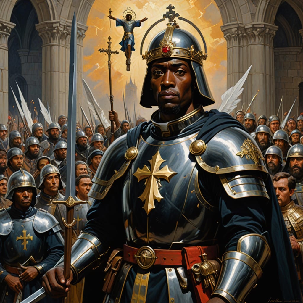 Imagine the modern world—where his image stands eternal—a symbol of resilience and defiance! A dark-skinned hero, depicted from the 13th century onward, challenging racial prejudices and shining as a testament to divine grace’s universality! The proud crest of Coburg, bearing Maurice—the “Coburg Moor”—raises an unyielding banner—a symbol of dignity, strength, and triumphant resistance against oppression! His very visage shouts—a clarion call—“Before God, all races are equal! All hearts beat in sacred unity! All souls are bound by divine love!”