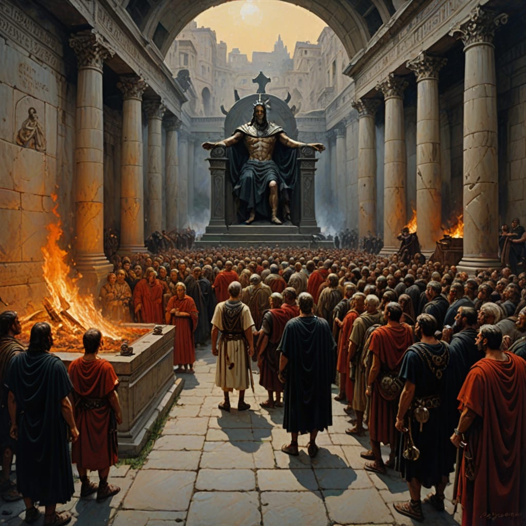 Feel the raw, unyielding fire of their faith, blazing defiantly against the oncoming storm, refusing to betray their Savior. And yet, the tragic climax—when the emperor, cold as iron, condemned these brave souls to death, simply because they reverently refused to bow to the pagan Roman gods! Oh, the agony, the unbreakable spirit, the purest martyrdom sealed in their fiery sacrifice—an eternal testament to unwavering faith in the face of overwhelming darkness!