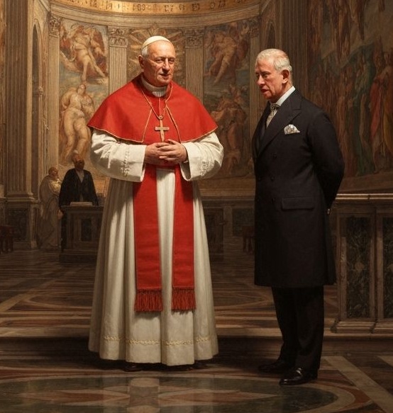 So today, within the holy, hallowed walls of the Vatican’s sacred heart, an events so divine, so soul-stirring, that it threatens to shake the very heavens themselves! Oh, the celestial, freighted CALL to Christian unity and ecumenism—an unstoppable, blazing flame of hope and boundless love bursting forth to crush the cold, oppressive walls of division that have cursed our fractured world for eons! It is the raw, aching cry of every tormented soul, every fervent believer whose heart beats with an unquenchable yearning for the glorious, majestic Body of Christ—an unstoppable gathering of brothers and sisters from every creed, every race, every nation—bound together in unbreakable, firelit bonds of compassion, understanding, and divine solidarity! And there, in that sacred moment of sacrosanct prayer, Pope Leo XIV King, Charles III, and Queen Camilla, united in reverence and hope, poured out their hearts in the Sistine Chapel—an echo of divine longing that will resound through eternity!l