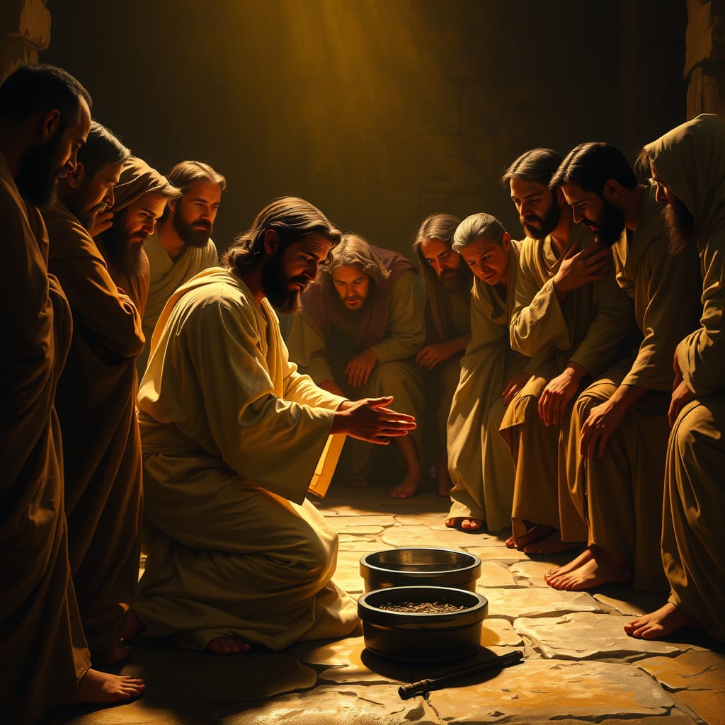 Jesus’ commandment of love, exemplified through the washing of the disciples’ feet. The rite of foot-washing, a significant symbol, developed separately and was gradually incorporated into the liturgy.